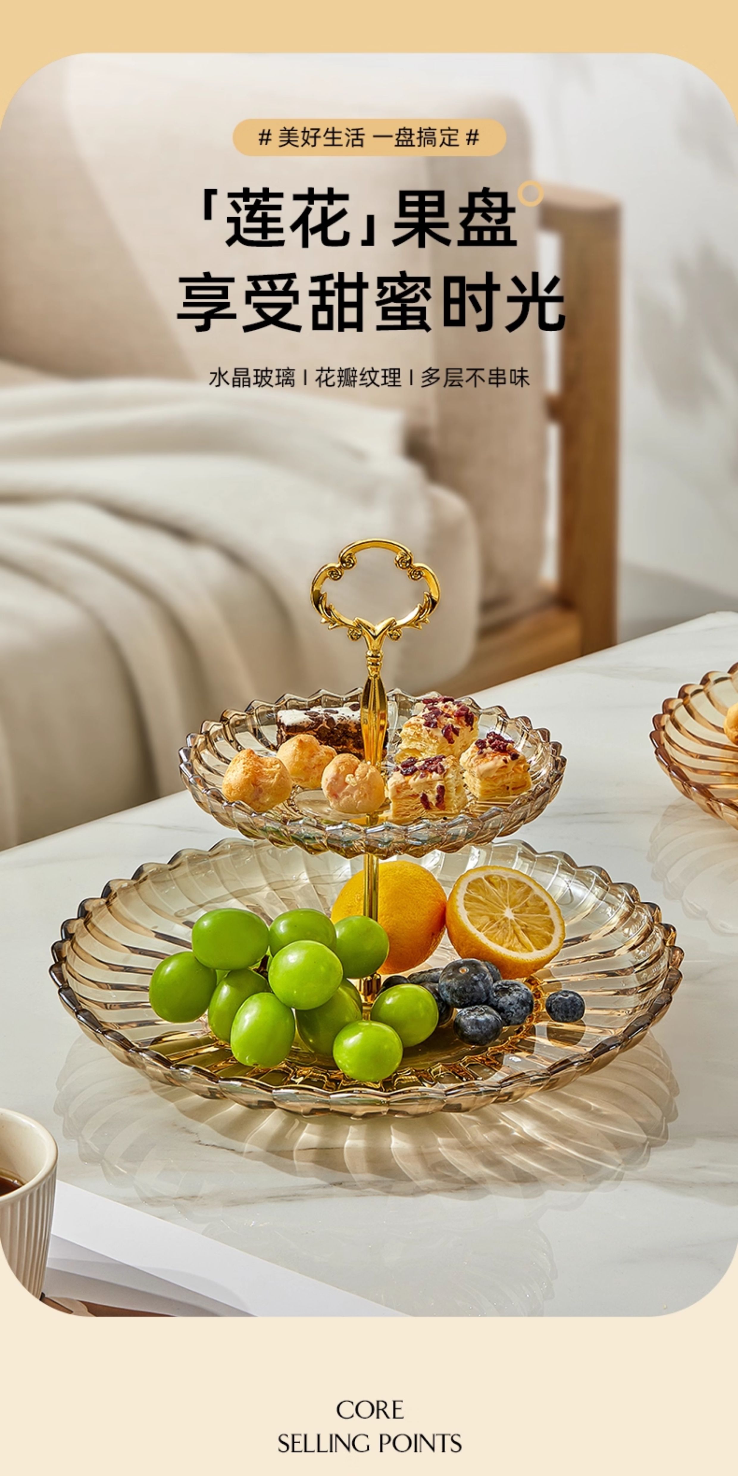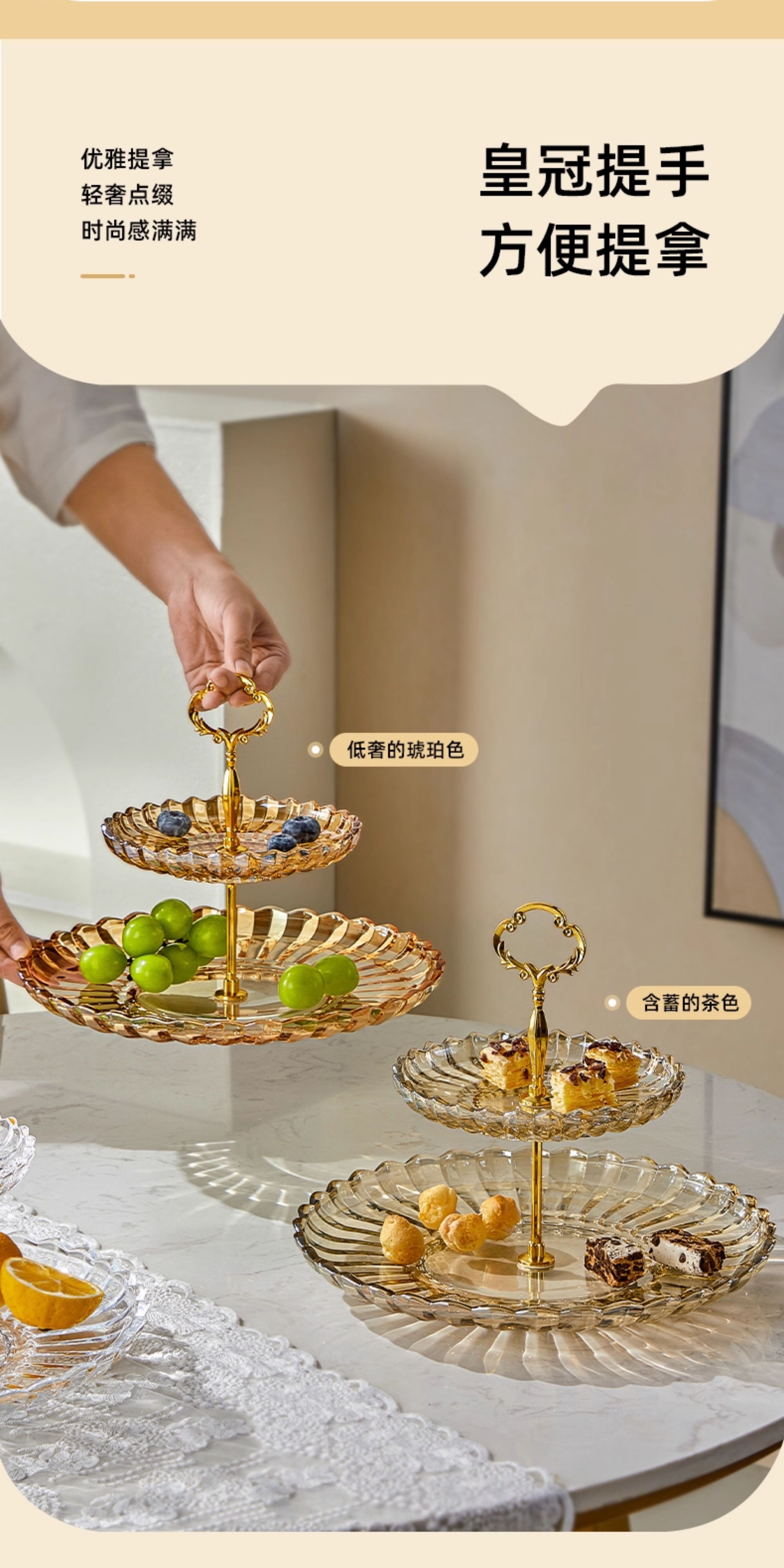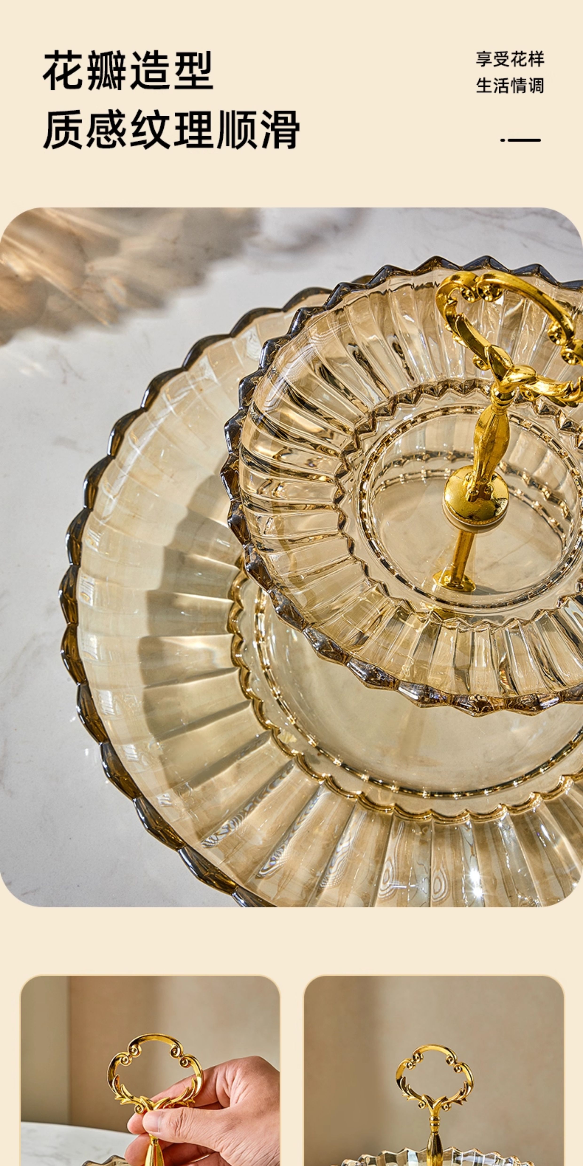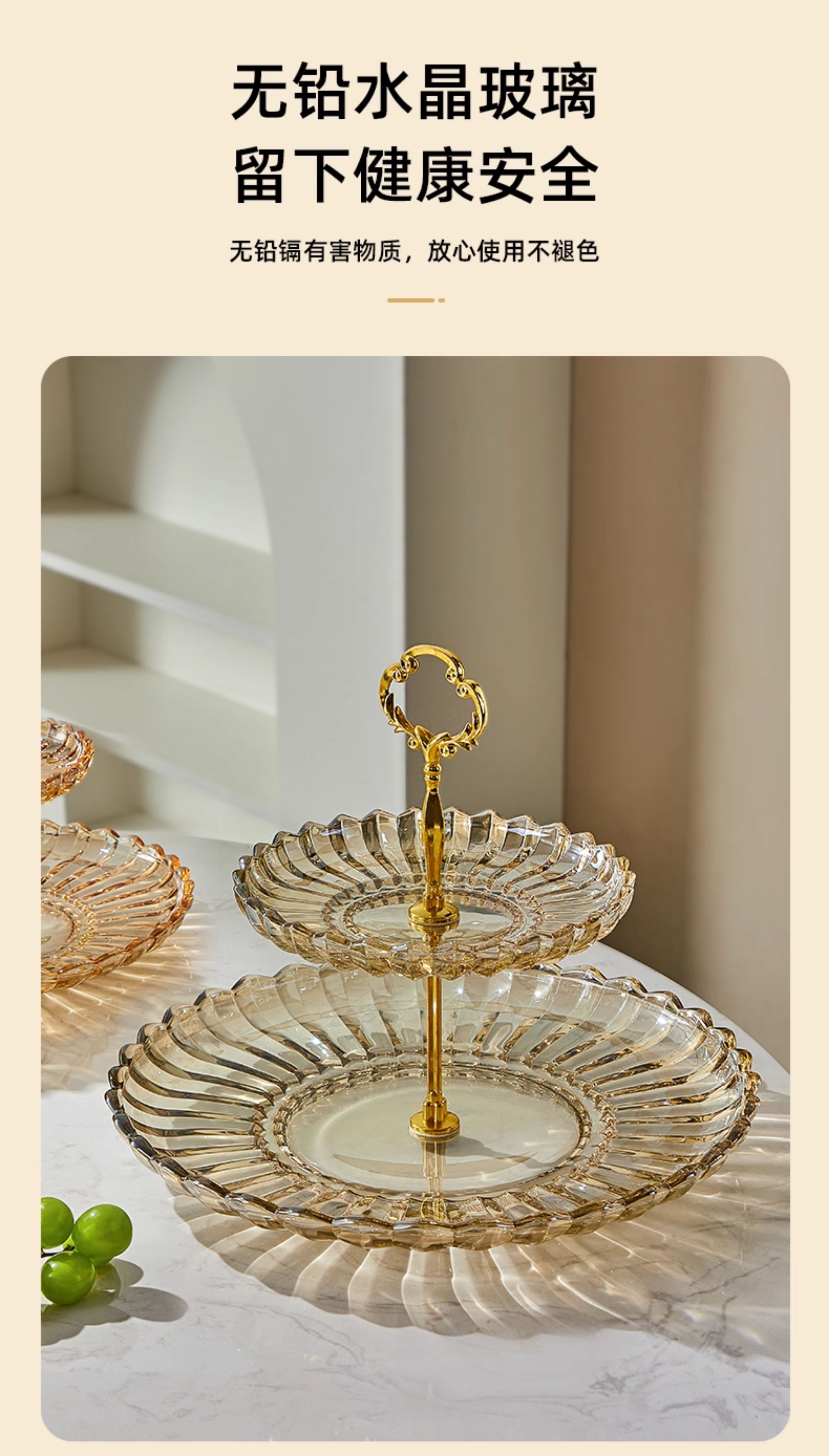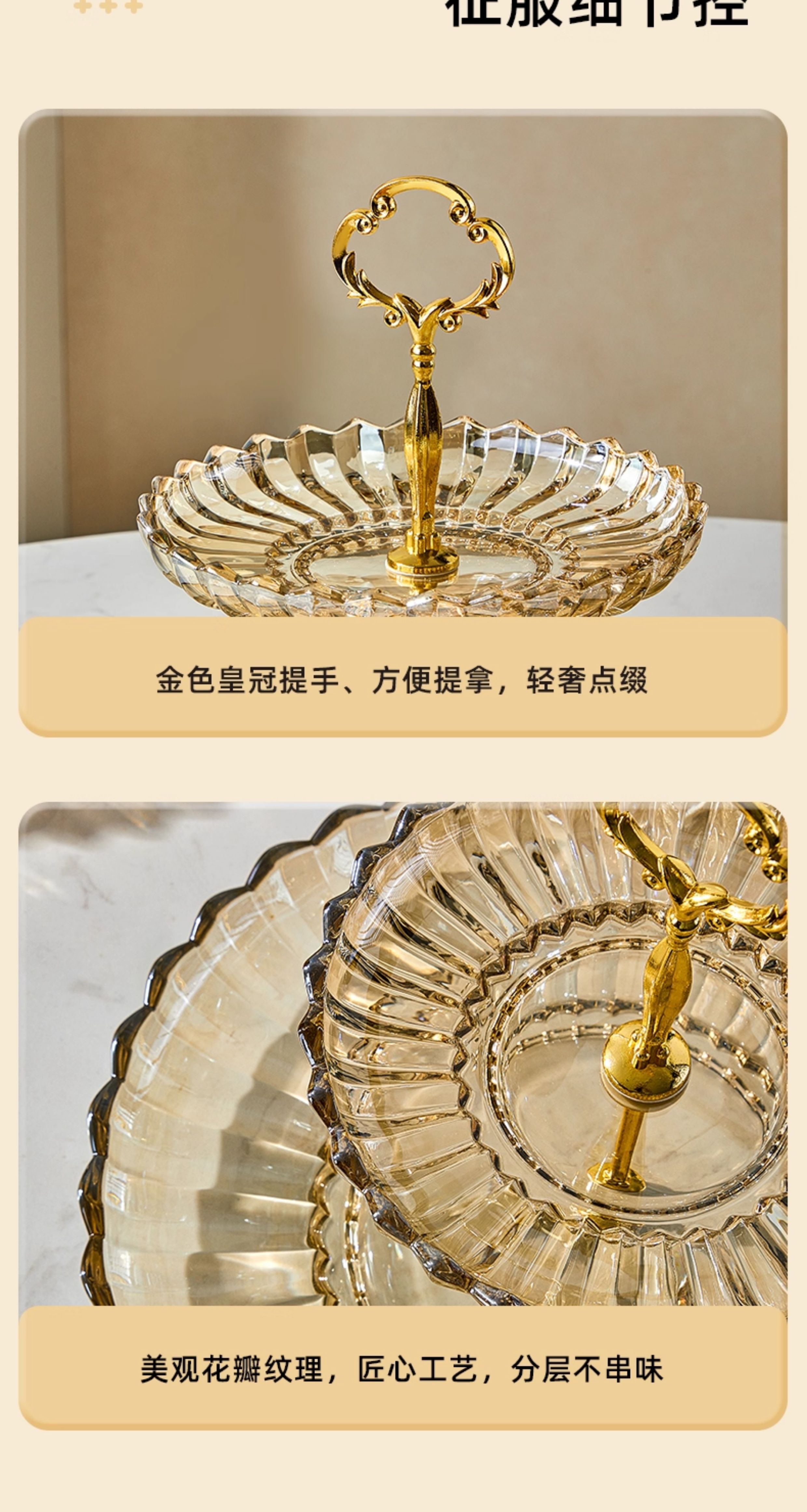 Light Luxury Double-Layer Glass Fruit Plate for Living Room, Home Coffee Table, Snack and Dessert Plate, Afternoon Tea Exquisite Tray, High-End Plate