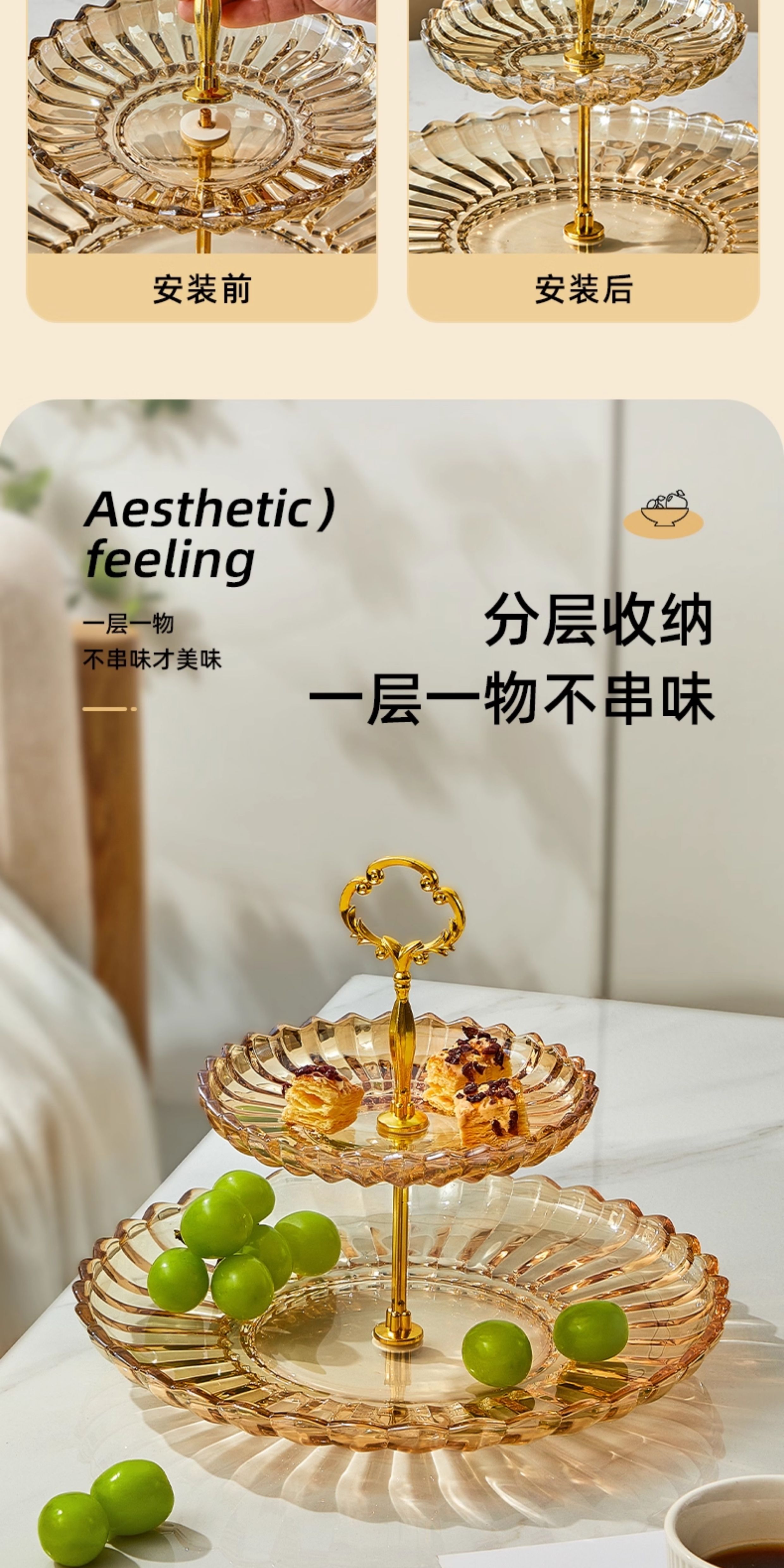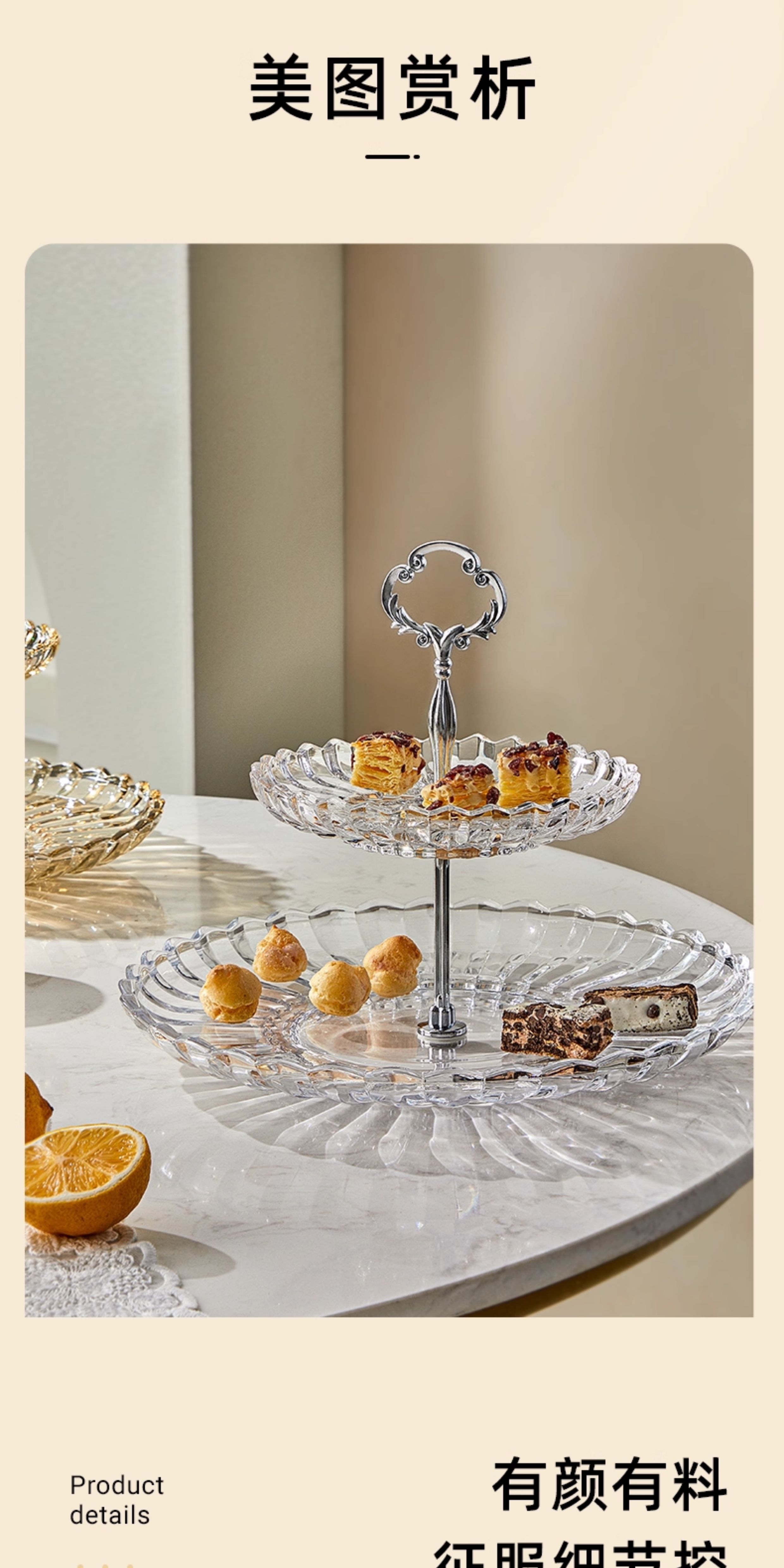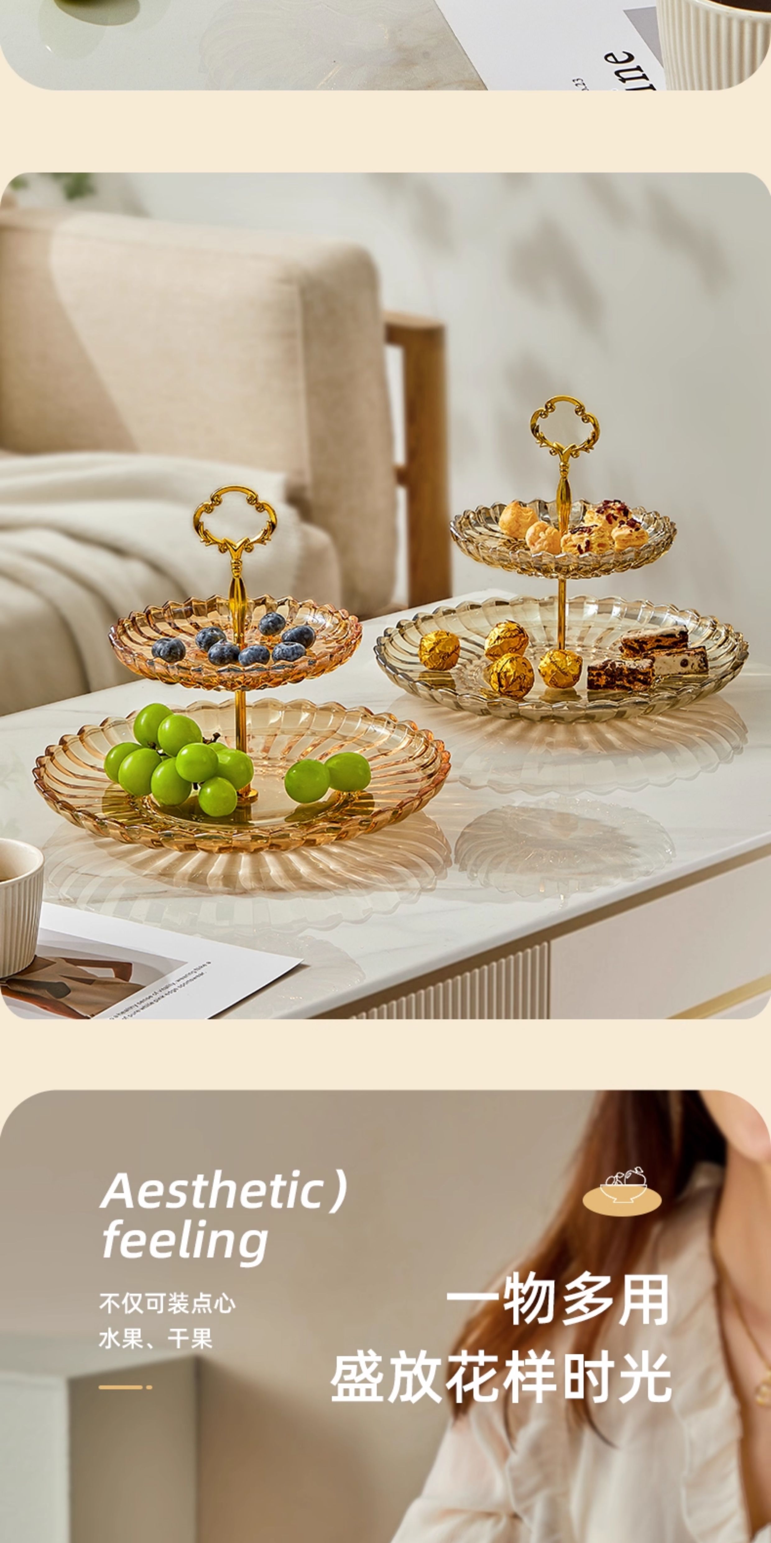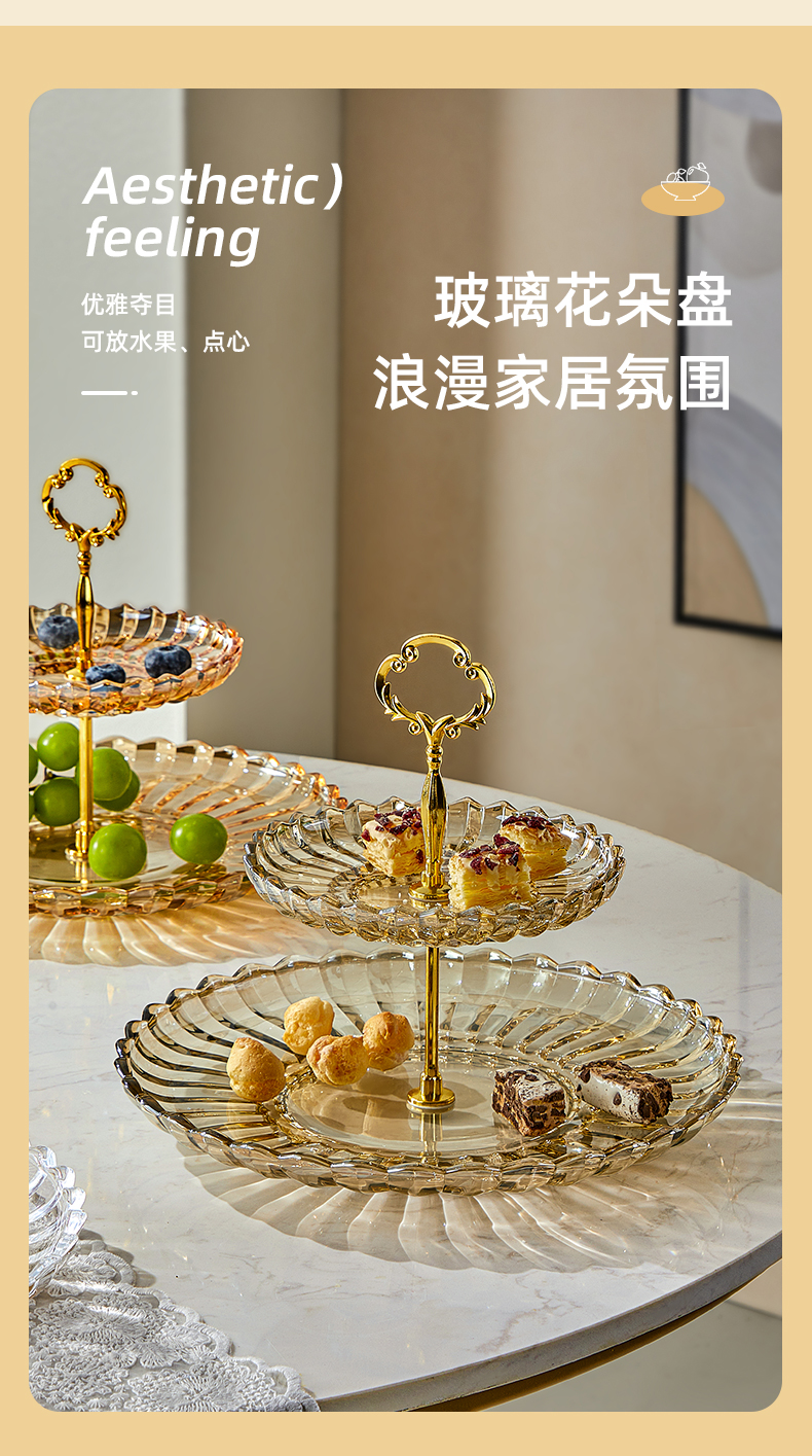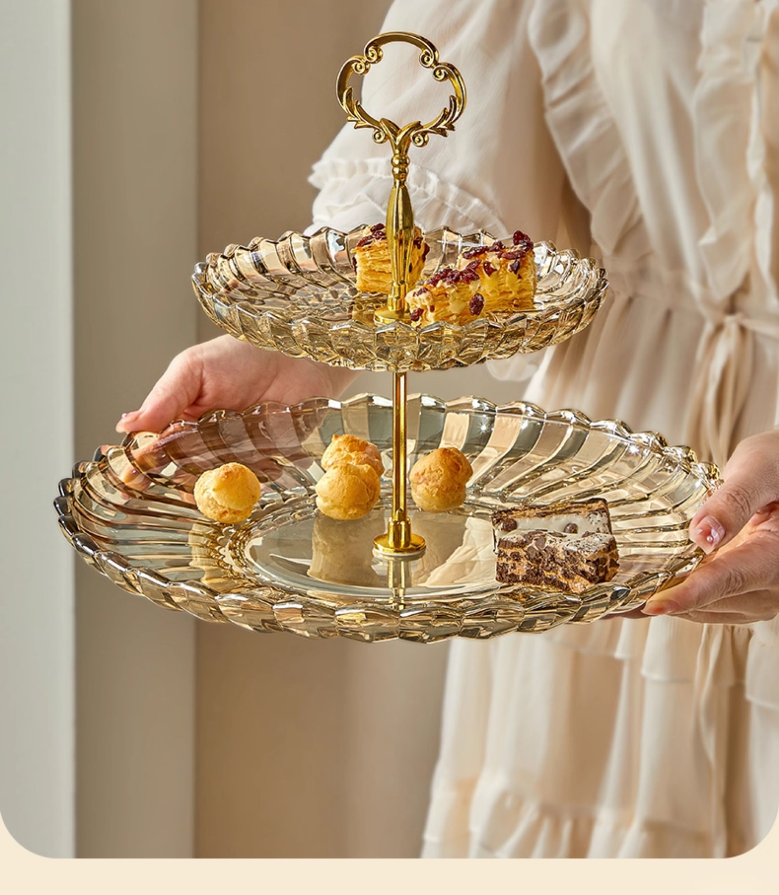 Light Luxury Double-Layer Glass Fruit Plate for Living Room, Home Coffee Table, Snack and Dessert Plate, Afternoon Tea Exquisite Tray, High-End Plate